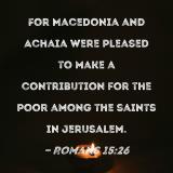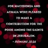 For Macedonia and Achaia were pleased to make a contribution for the poor among the saints in Jerusalem.