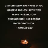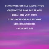Circumcision has value if you observe the law, but if you break the law, your circumcision has become uncircumcision.
