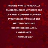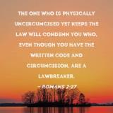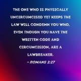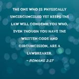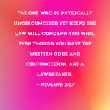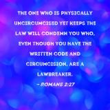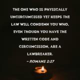 The one who is physically uncircumcised yet keeps the law will condemn you who, even though you have the written code and circumcision, are a lawbreaker.