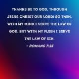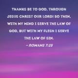 Thanks be to God, through Jesus Christ our Lord! So then, with my mind I serve the law of God, but with my flesh I serve the law of sin.