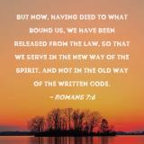 But now, having died to what bound us, we have been released from the law, so that we serve in the new way of the Spirit, and not in the old way of the written code.