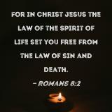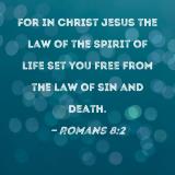For in Christ Jesus the law of the Spirit of life set you free from the law of sin and death.
