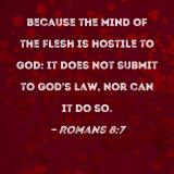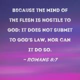 because the mind of the flesh is hostile to God: It does not submit to God's law, nor can it do so.