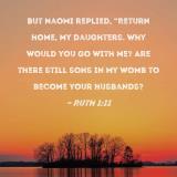 But Naomi replied, "Return home, my daughters. Why would you go with me? Are there still sons in my womb to become your husbands?