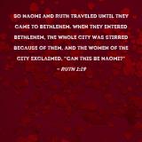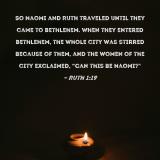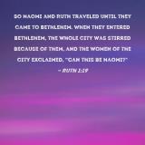 So Naomi and Ruth traveled until they came to Bethlehem. When they entered Bethlehem, the whole city was stirred because of them, and the women of the city exclaimed, "Can this be Naomi?"
