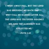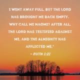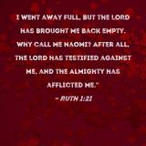 I went away full, but the LORD has brought me back empty. Why call me Naomi? After all, the LORD has testified against me, and the Almighty has afflicted me."