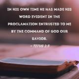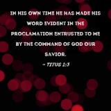 In His own time He has made His word evident in the proclamation entrusted to me by the command of God our Savior.