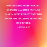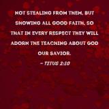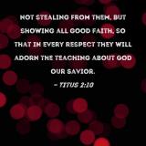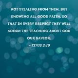 not stealing from them, but showing all good faith, so that in every respect they will adorn the teaching about God our Savior.