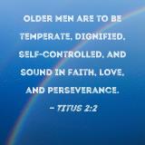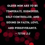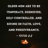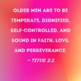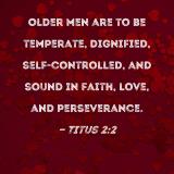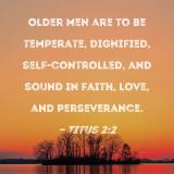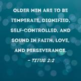 Older men are to be temperate, dignified, self-controlled, and sound in faith, love, and perseverance.