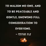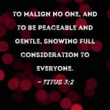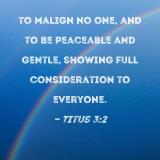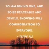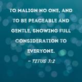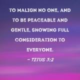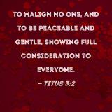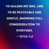 to malign no one, and to be peaceable and gentle, showing full consideration to everyone.