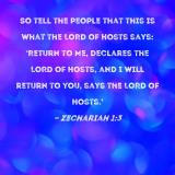 So tell the people that this is what the LORD of Hosts says: 'Return to Me, declares the LORD of Hosts, and I will return to you, says the LORD of Hosts.'