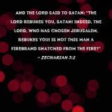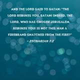 And the LORD said to Satan: "The LORD rebukes you, Satan! Indeed, the LORD, who has chosen Jerusalem, rebukes you! Is not this man a firebrand snatched from the fire?"
