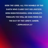 Seek the LORD, all you humble of the earth who carry out His justice. Seek righteousness; seek humility. Perhaps you will be sheltered on the day of the LORD's anger.
