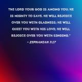 The LORD your God is among you; He is mighty to save. He will rejoice over you with gladness; He will quiet you with His love; He will rejoice over you with singing."